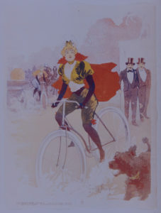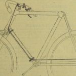 Bicyclette à cadre ouvert à tube courbe, fin du XIXe siècle. Dessin de Gaston Nourry, Paris : Imp Sevestre et Cie. Source : Médiathèque ville de Chaumont.