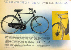 Bicyclette Raleigh équipée de d’une dynamo-moyeu Sturmey-Archer. extrait d’une brochure publicitaire de 1927. Source : http://www.sturmey-archerheritage.com