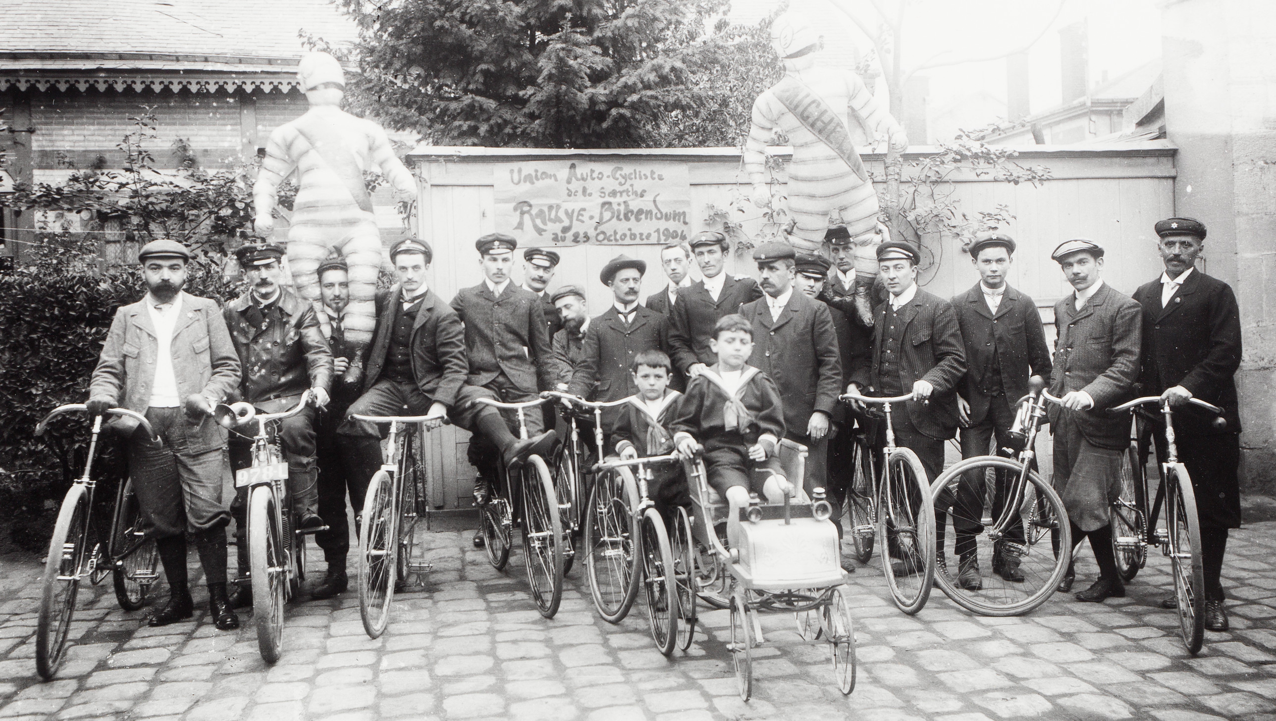 L’U.A.C.S au rallye Bibendum en 1904. Toujours à vélo, malgré le changement de nom. Cliché G. Jagot, A.D. Sarthe : 23 Fi 989.